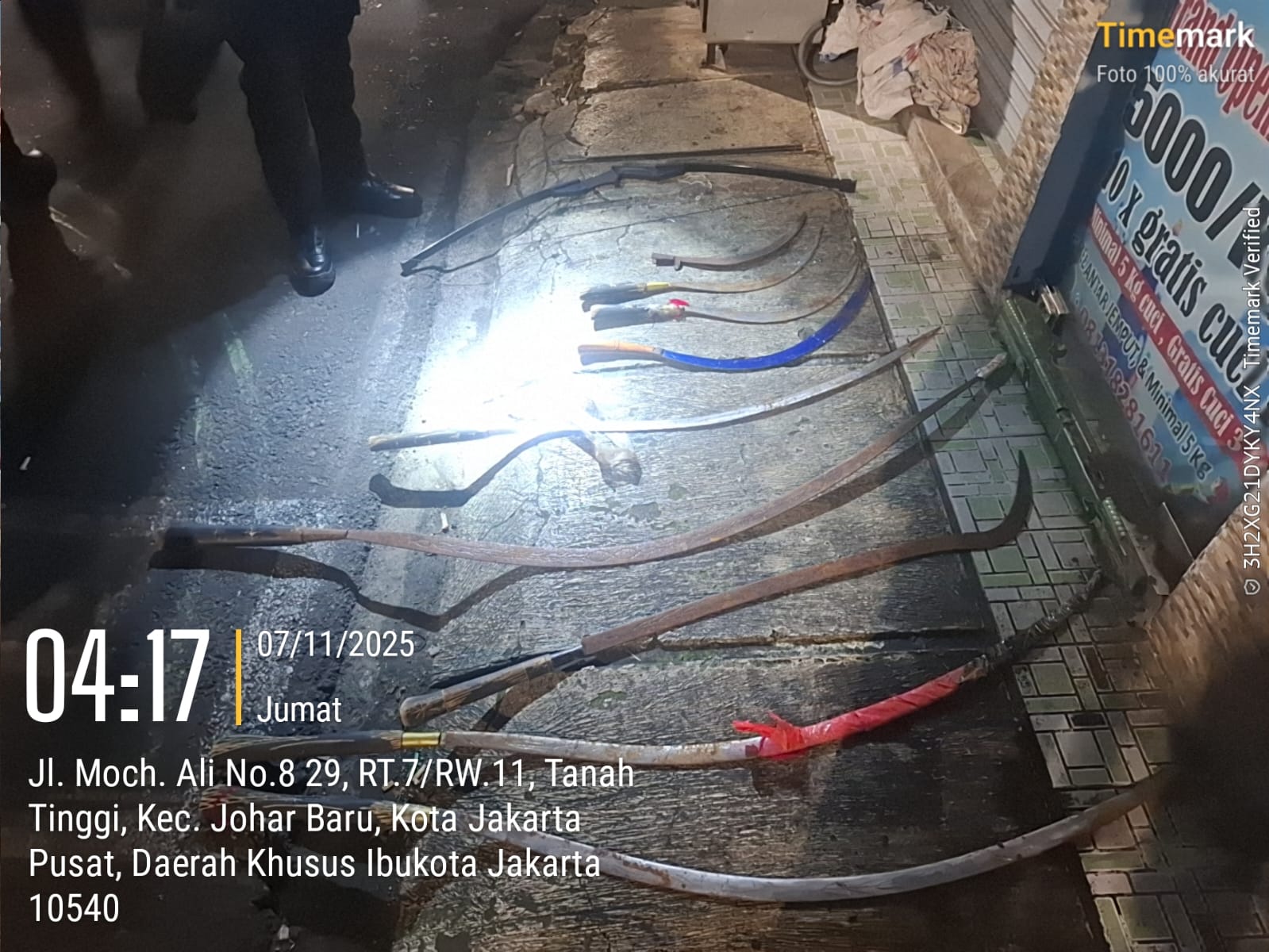 “Petugas kami menemukan sekelompok pemuda yang berkumpul di gang sempit sambil membawa senjata tajam. Berkat kesigapan tim di lapangan, tawuran berhasil digagalkan dan para pelaku langsung diamankan,” ujar Susatyo, Jumat (7/11/2025).
