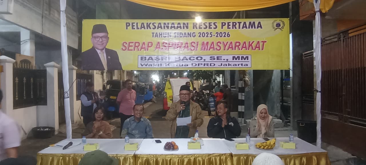 Jakarta Pusat – Bhabinkamtibmas Kelurahan Galur, Aiptu Baktiar, melakukan pengamanan dan monitoring selama reses pertama tahun 2025–2026 yang digelar Bp. Basri Baco, SE, MM, anggota DPRD DKI Jakarta Komisi ‘B’ dari Fraksi Golkar, Selasa (11/11/2025) pukul 19.30 WIB di Jl. Galur Selatan RT 010/01, Kelurahan Galur, Johar Baru.