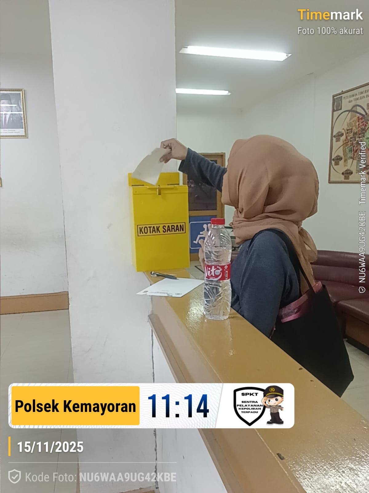 Jakarta Pusat – Polsek Kemayoran menerima sejumlah umpan balik positif dari masyarakat melalui kotak saran Pelayanan Sentra Pelayanan Kepolisian Terpadu (SPKT) pada hari Sabtu 15 November 2025. Selama rentang waktu pukul 08.00 hingga 16.00 WIB, tercatat sebanyak enam lembar kritik dan saran dari warga yang memuji kecepatan, keramahan, dan profesionalisme petugas SPKT.