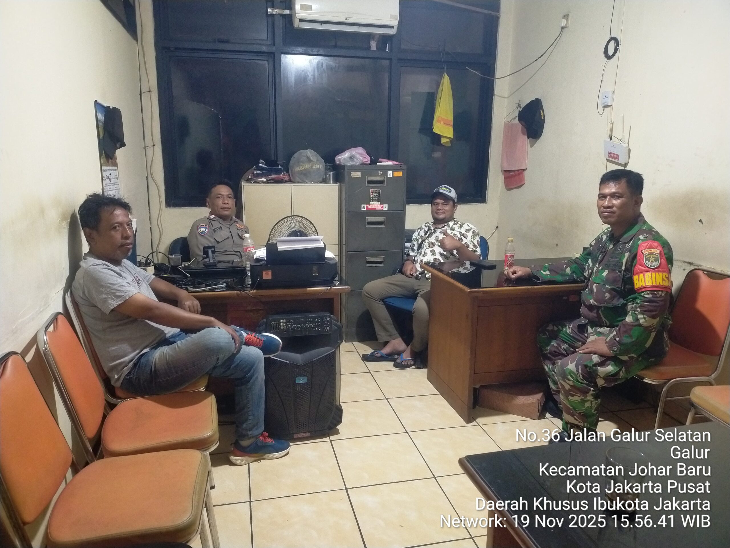 Jakarta Pusat — Upaya menjaga stabilitas keamanan di wilayah Johar Baru kembali dipertegas melalui koordinasi lintas unsur 3 pilar. Pada Kamis (20/11/2025) pukul 16.45 WIB, Bhabinkamtibmas Kelurahan Galur Aiptu Baktiar menggelar pertemuan koordinasi bersama Bhabinsa dan Forum Kewaspadaan Dini Masyarakat (FKDM) di Ruang 3 Pilar Kelurahan Galur, Jl. Galur Jaya RT 001/04, Kecamatan Johar Baru, Jakarta Pusat.