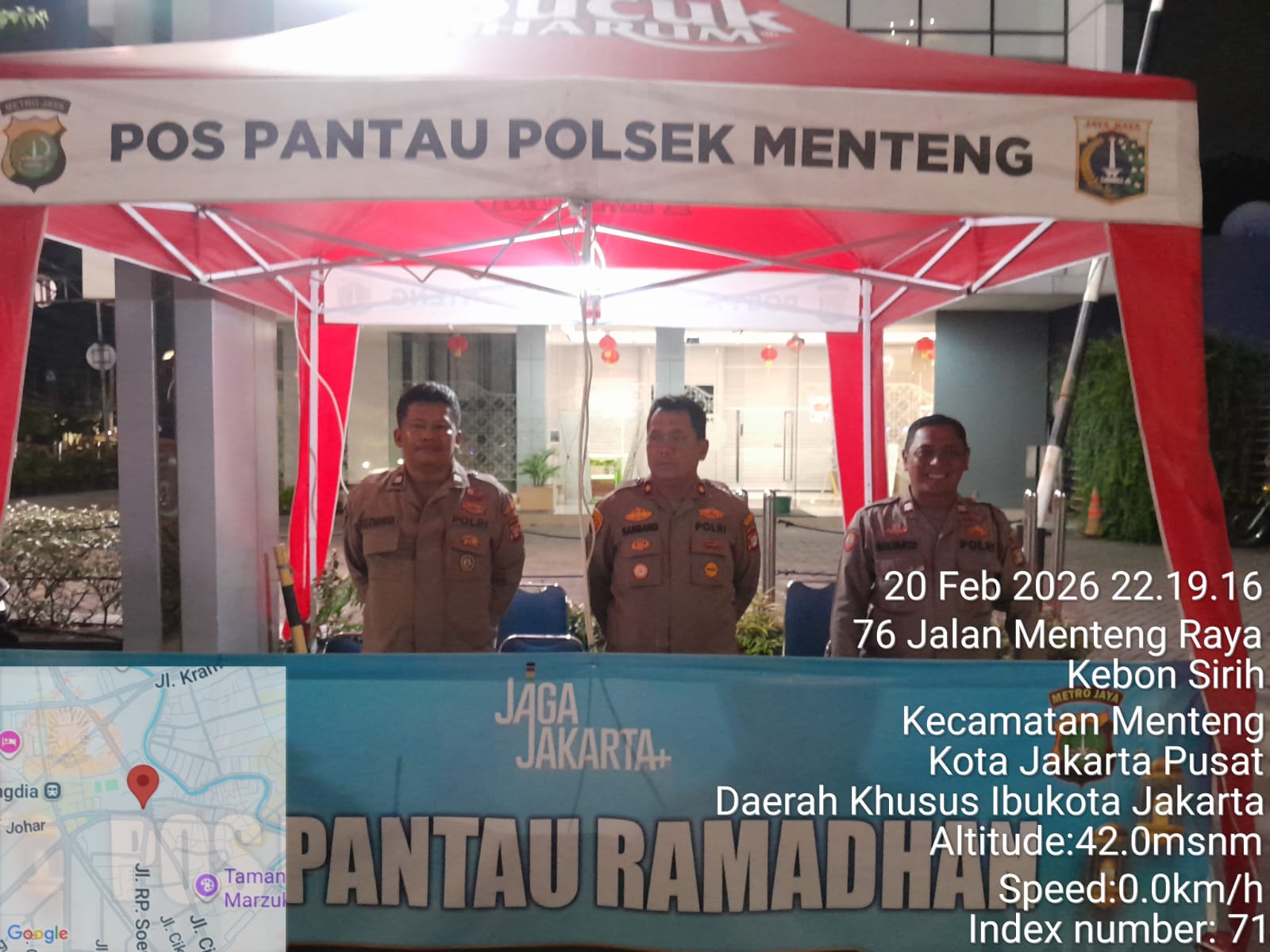 Jakarta Pusat – Dalam rangka menjaga stabilitas keamanan selama bulan suci Ramadhan, Polsek Metro Menteng bersama satgas Gen Z Jaga Jakarta kembali menggelar kegiatan pemantauan dan pengawasan wilayah pada malam hari. Kegiatan ini difokuskan di Pos Pantau kawasan Kantor Pos Cikini, Jalan Menteng Raya, Kecamatan Menteng, Jakarta Pusat, yang menjadi salah satu titik rawan aktivitas masyarakat pada malam Ramadhan. Jumat (20/2/2026)