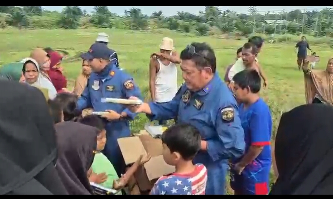 Aceh Tamiang — Pilot dan kru Helikopter AW-169 nomor registrasi 3307 menyalurkan bantuan kemanusiaan berupa 145 mushaf Al-Qur’an kepada masyarakat terdampak banjir di Aceh Tamiang, Senin (22/12/2025) pukul 14.30 WIB. Kegiatan berlangsung di Lapangan Bima Patra, Kabupaten Aceh Tamiang.
