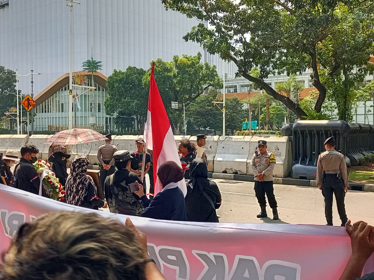 Sejak pagi, massa aksi terlihat berkumpul sambil membawa spanduk bertuliskan permohonan kepada Presiden serta membagikan bunga mawar sebagai simbol protes damai. Melalui pengeras suara, mereka menyampaikan aspirasi terkait keberatan atas rencana eksekusi rumah di wilayah Kesatrian Berland, Jakarta Timur.