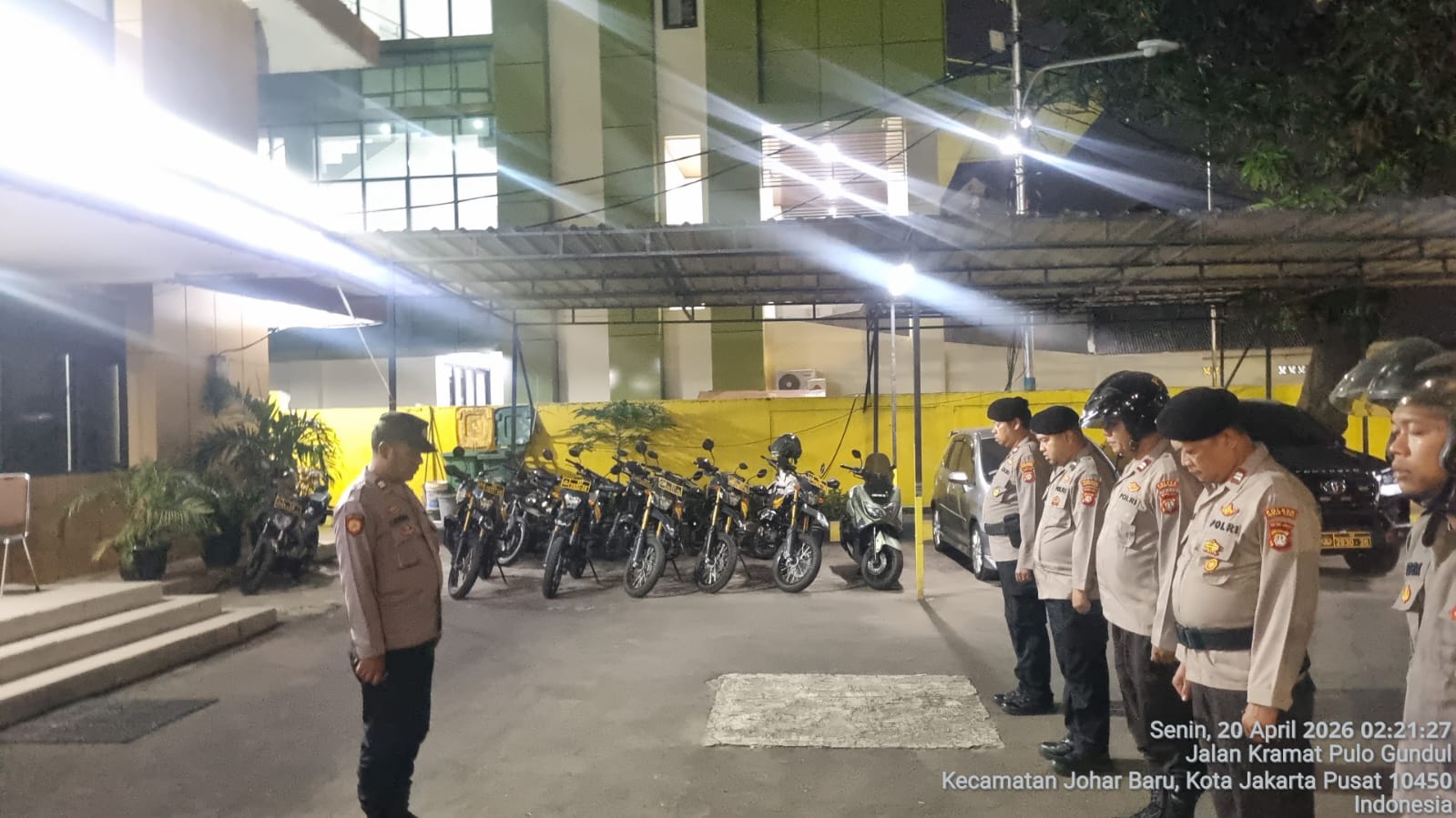 Jakarta Pusat – Dalam rangka mengantisipasi potensi gangguan keamanan dan ketertiban masyarakat (kamtibmas), Polsek Johar Baru menggelar Apel Patroli Cipta Kondisi di halaman Mapolsek Johar Baru pada Senin (20/4/2026) pukul 02.10 WIB.