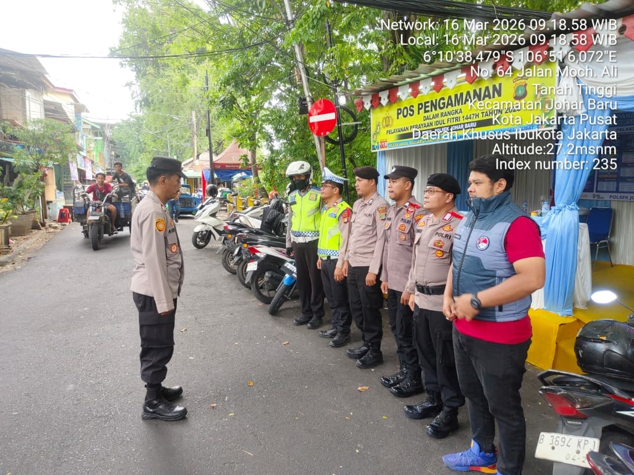Jakarta Pusat – Dalam rangka menjaga situasi keamanan dan ketertiban masyarakat selama bulan suci Ramadhan serta menjelang Hari Raya Idul Fitri, personel gabungan melaksanakan apel pagi di Pos Pengamanan (Pospam) Operasi Ketupat Jaya 2026 Kota Paris, Kelurahan Tanah Tinggi, Kecamatan Johar Baru, Jakarta Pusat, Senin (16/3/2026).