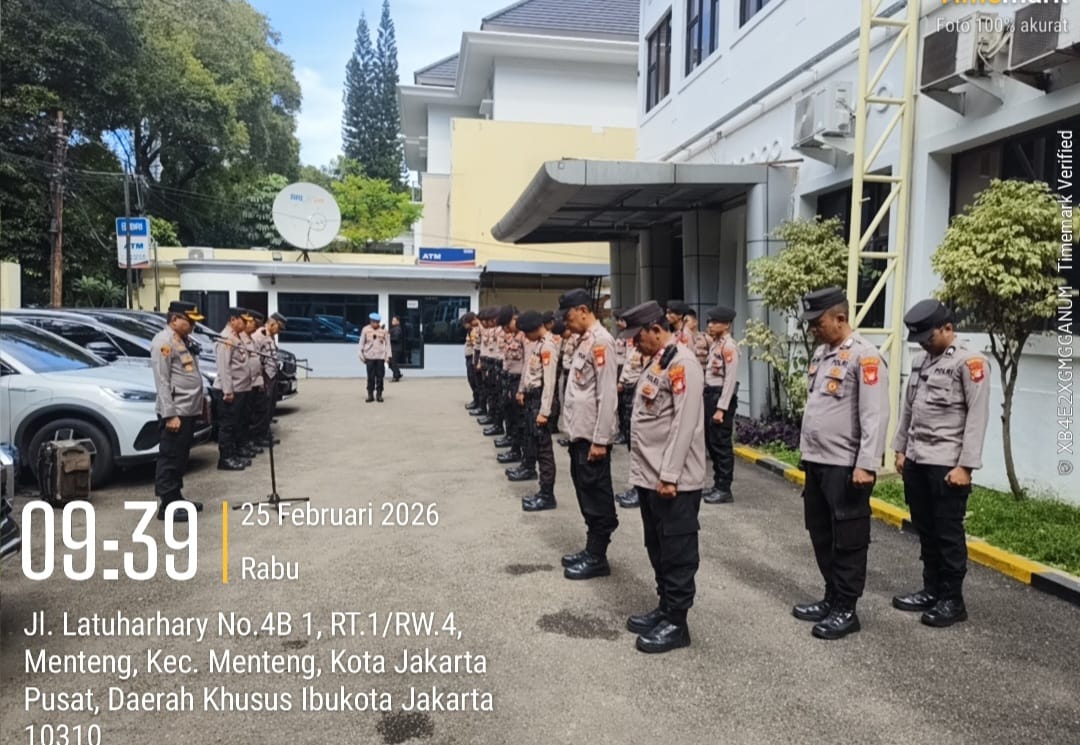 Jakarta Pusat – Polsek Metro Menteng melaksanakan giat apel pasukan pelayanan pengamanan aksi unjuk rasa yang digelar oleh Forum Komunikasi Mahasiswa Hukum Sejabodetabek di kantor Komisi Nasional Hak Asasi Manusia Republik Indonesia (Komnas HAM RI), Jalan Latuharhari No. 4B, Menteng, Jakarta Pusat, pada hari ini. Apel pasukan tersebut merupakan bagian dari kesiapsiagaan Polri dalam memberikan pelayanan, perlindungan, dan pengamanan agar kegiatan penyampaian pendapat di muka umum berjalan aman dan tertib. Rabu (25/2/2026)