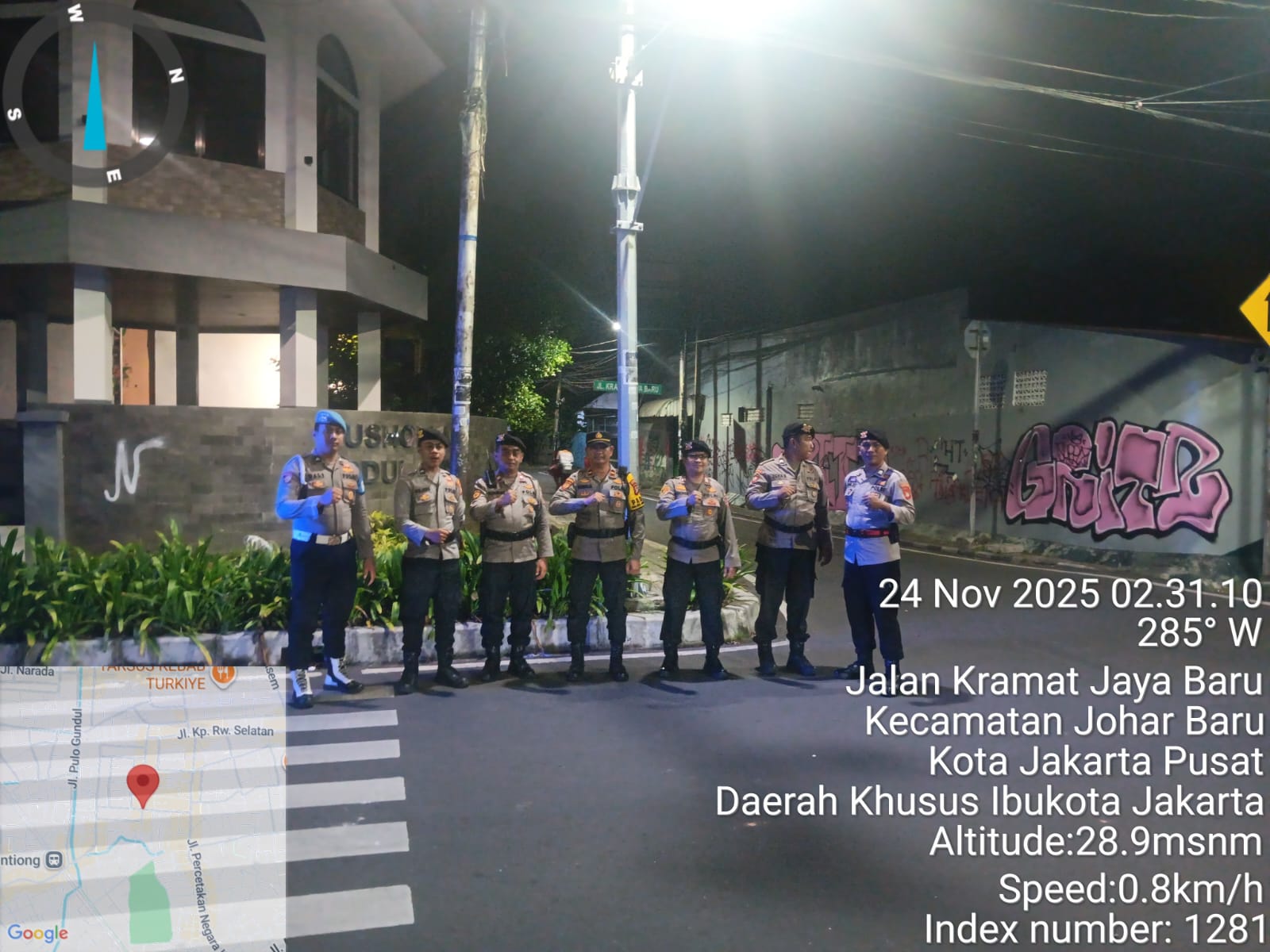 Jakarta Pusat – Polsek Johar Baru menggelar Apel Patroli Skala Sedang Antisipasi Guantibmas pada Senin (24/11/2025) pukul 02.00 WIB di halaman Mako Polsek. Kegiatan diikuti 10 personel dan dipimpin Padal Ipda Iskandar Sofyan Lubis selaku Kanit Sabhara.
