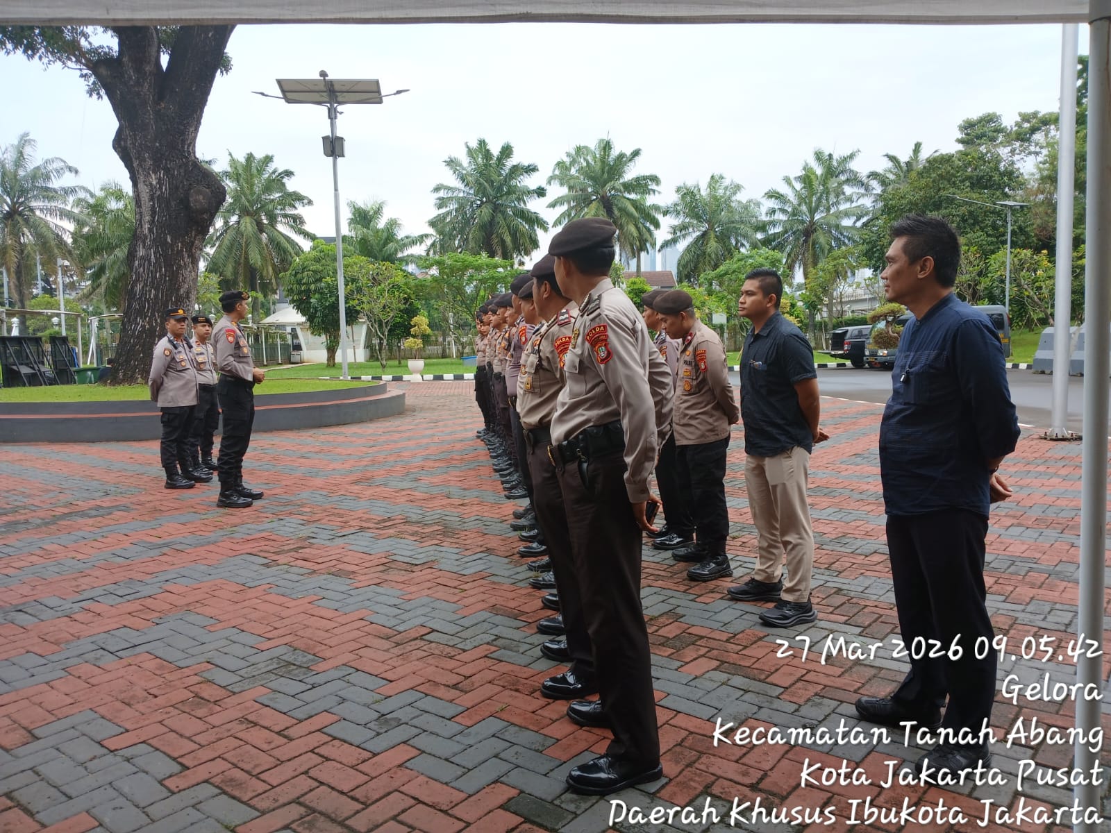Kegiatan apel tersebut dipimpin langsung oleh AKP Osorio Dos Santos selaku Kanit 2 Direktorat Pengamanan Objek Vital (Dit. Pam Obvit) Polda Metro Jaya. sebanyak 37 personel gabungan dikerahkan dalam kegiatan pengamanan ini. Kekuatan tersebut terdiri dari 15 personel Dit. Pam Obvit Polda Metro Jaya di bawah kendali AKP Osorio Dos Santos, 20 personel dari Direktorat Samapta Polda Metro Jaya yang dipimpin oleh IPDA Chandra, serta 2 personel dari Polsek Metro Tanah Abang di bawah pimpinan IPTU Kardi selaku Kapolsubsektor Palmerah.