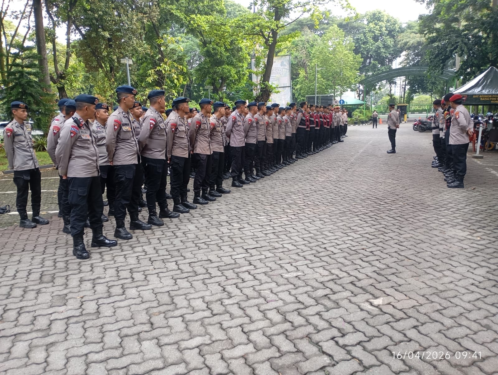 Jakarta Pusat – Aparat kepolisian menggelar apel pelayanan dalam rangka pengamanan aksi unjuk rasa (unras) dari DPP FSPMI di Gerbang D DPR RI, kawasan LHK Atas dan LHK Bawah, Kamis (16/4/2026) pukul 09.30 WIB.