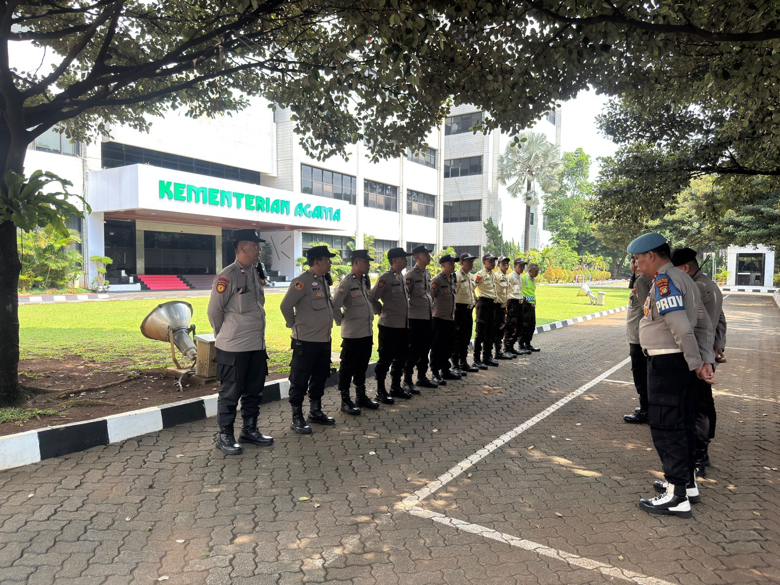 Jakarta Pusat – Polsek Sawah Besar melaksanakan apel pelayanan pengamanan aksi unjuk rasa dari Gerakan Mahasiswa Tangerang di depan Kantor Kementerian Agama RI, Jalan Lapangan Banteng Barat, Pasar Baru, Sawah Besar, Jakarta Pusat, Jumat (17/4/2026) sekitar pukul 09.00 WIB. Aksi yang diikuti sekitar 20 orang massa tersebut mengangkat tuntutan agar dugaan pungli PPPK dan TPG di Kemenag Kota Tangerang diusut tuntas. Apel pengamanan dipimpin Wakapolsek Sawah Besar AKP Budiono dengan kekuatan 17 personel gabungan.