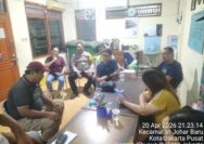 Jakarta Pusat — Aparat Kepolisian dari Polsek Cempaka Putih menggelar Apel Pelayanan dalam rangka pengamanan aksi unjuk rasa yang dilakukan oleh LSM Fijar Keadilan Demokrasi di Kantor Bawas MA RI, Jalan Jenderal Ahmad Yani, Cempaka Putih, Selasa (21/4/2026).