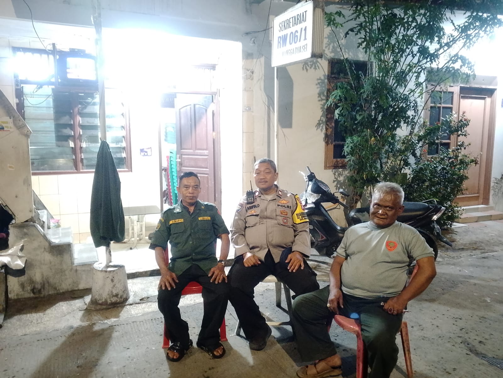 Kegiatan ini dilakukan sebagai langkah antisipasi terhadap potensi gangguan kamtibmas di wilayah Mangga Dua Selatan, terutama pada jam rawan malam hari. Dalam pelaksanaannya, Aiptu Arifin berdialog langsung bersama Bapak Sunaryo selaku Linmas RW 006 dan warga, dengan fokus pada monitoring kerawanan wilayah, pendataan pendatang baru, serta pertukaran informasi untuk deteksi dini dan pencegahan dini. Kegiatan berlangsung dalam suasana aman dan kondusif dengan melibatkan unsur masyarakat setempat.