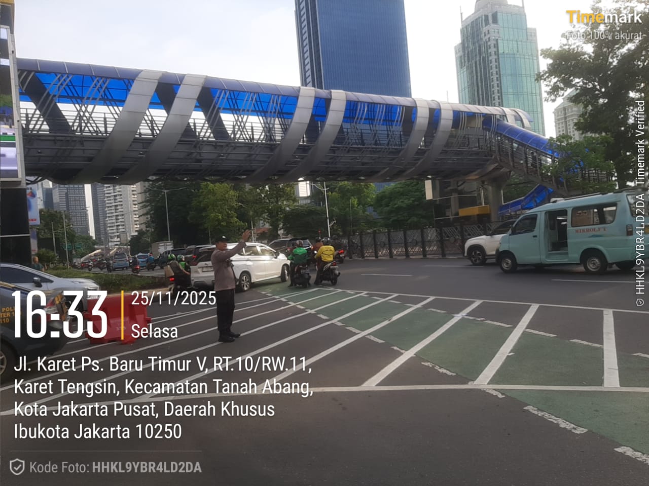 Jakarta Pusat — Dalam rangka menjaga keamanan, ketertiban, dan kelancaran arus lalu lintas di wilayah hukum Polsek Metro Tanah Abang, Personel Polsek melaksanakan kegiatan pengaturan lalu lintas serta antisipasi potensi gangguan kamtibmas yang dilakukan pada hari Kamis Sore (13/11/2025) di Pertigaan Karet Jalan KH Mas Mansyur, Kelurahan Karet Tengsin, Kecamatan Tanah Abang, Jakarta Pusat.
