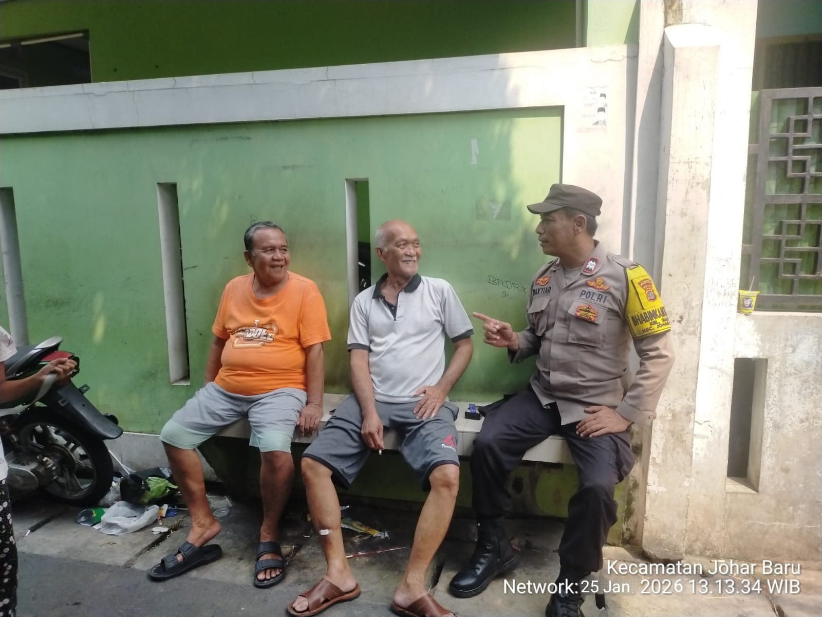 Jakarta Pusat — Dalam rangka menjaga stabilitas keamanan dan ketertiban masyarakat (kamtibmas) sekaligus mempererat kemitraan dengan warga, Bhabinkamtibmas Kelurahan Galur Aiptu Baktiar Emri melaksanakan kegiatan sambang dan cooling system di lingkungan RT 014 RW 05, Jalan Rawa Tengah, Kelurahan Galur, Kecamatan Johar Baru, pada Minggu (25/1/2026) pukul 13.00 WIB.