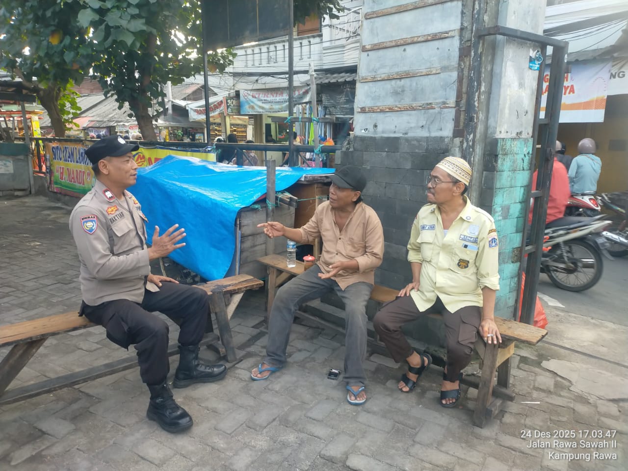 Jakarta Pusat – Dalam rangka menjaga stabilitas keamanan dan ketertiban masyarakat (kamtibmas) menjelang perayaan Natal 2025 dan Tahun Baru 2026 (Nataru), jajaran Polsek Johar Baru melalui Bhabinkamtibmas Kelurahan Galur melaksanakan kegiatan sambang dan cooling system di kawasan Pasar Gembrong Galur, RW 04 Kelurahan Galur, Kecamatan Johar Baru, Jakarta Pusat, Sabtu (27/12/2025).