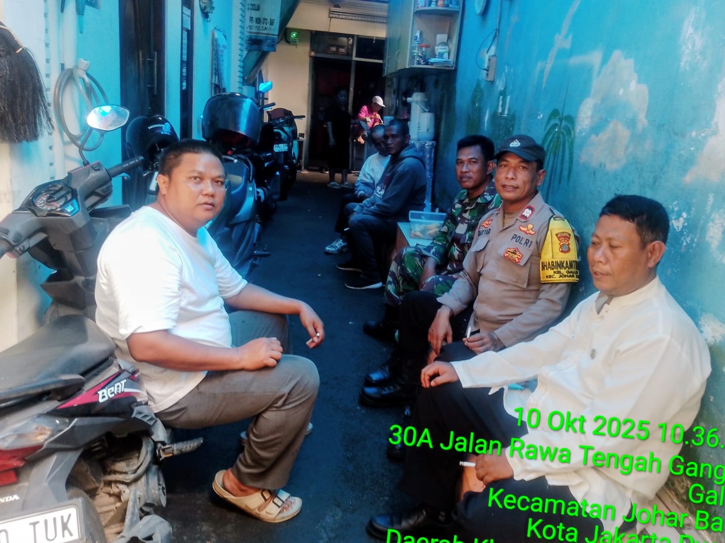 Jakarta Pusat – Dalam rangka menjaga stabilitas keamanan serta mempererat kemitraan antara Polri dan masyarakat, Bhabinkamtibmas Kelurahan Galur, Aiptu Baktiar, bersama Babinsa Galur, Serka Agus, melaksanakan kegiatan sambang dan cooling system di wilayah RW 05, Jalan Rawa Tengah, Kelurahan Galur, Kecamatan Johar Baru, pada Jumat (19/10/2025) pukul 10.00 WIB.