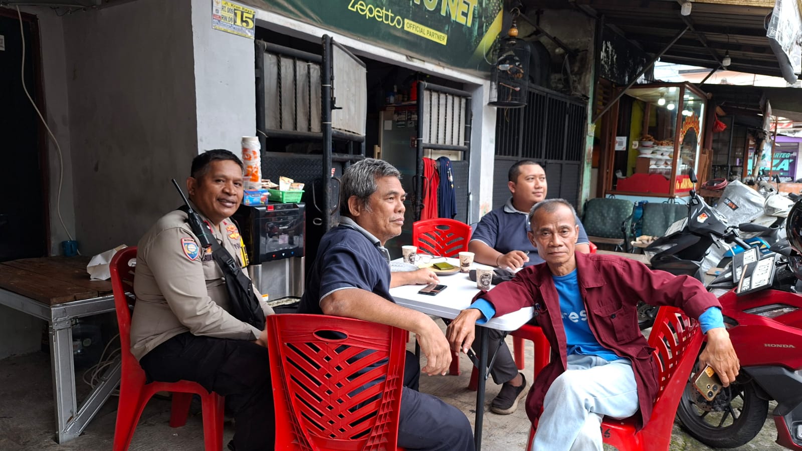Dalam kegiatan sambang tersebut, Aipda Mahajin bertemu dengan Staf RW 06 Bapak Agung, FKDM RW 06 Bapak Slamet, FKDM RW 05 Bapak Andi, serta FKDM RW 04 Bapak Jay. Pertemuan ini dimanfaatkan untuk saling bertukar informasi kewilayahan, menyampaikan perkembangan situasi lingkungan, serta memperkuat sinergi dalam upaya pencegahan gangguan keamanan dan ketertiban masyarakat (kamtibmas).