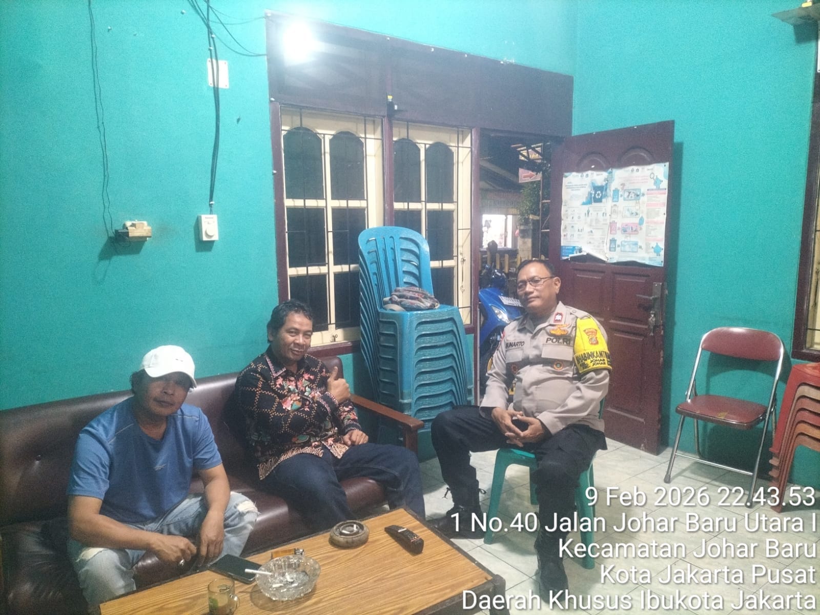 Kegiatan yang berlangsung sekitar pukul 22.50 WIB tersebut dilaksanakan oleh Bhabinkamtibmas Kelurahan Johar Baru Aiptu Sunarto dengan menyambangi Sekretariat RW 03 di Jalan Johar Baru Utara I. Dalam kegiatan tersebut, petugas berdialog langsung dengan Ketua RW 03 Basri dan Ketua RT 02/RW 03 Budi.
