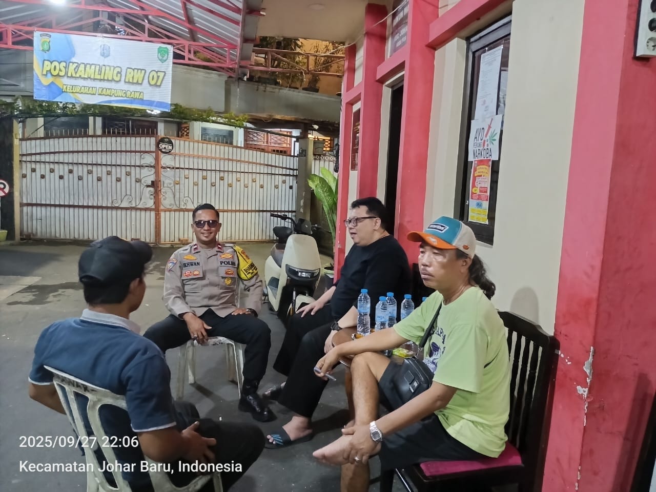 Jakarta Pusat – Bhabinkamtibmas Kelurahan Johar Baru, Aiptu Sunarto, melaksanakan patroli dialogis dan sambang wilayah secara door-to-door ke warga RW 01, Minggu (28/9/2025) pukul 16.56 WIB, di Jl. Kramat Jaya Baru I RT 02/RW 01, Kelurahan Johar Baru. Kegiatan ini juga dilengkapi dengan cooling system untuk menciptakan situasi kondusif.