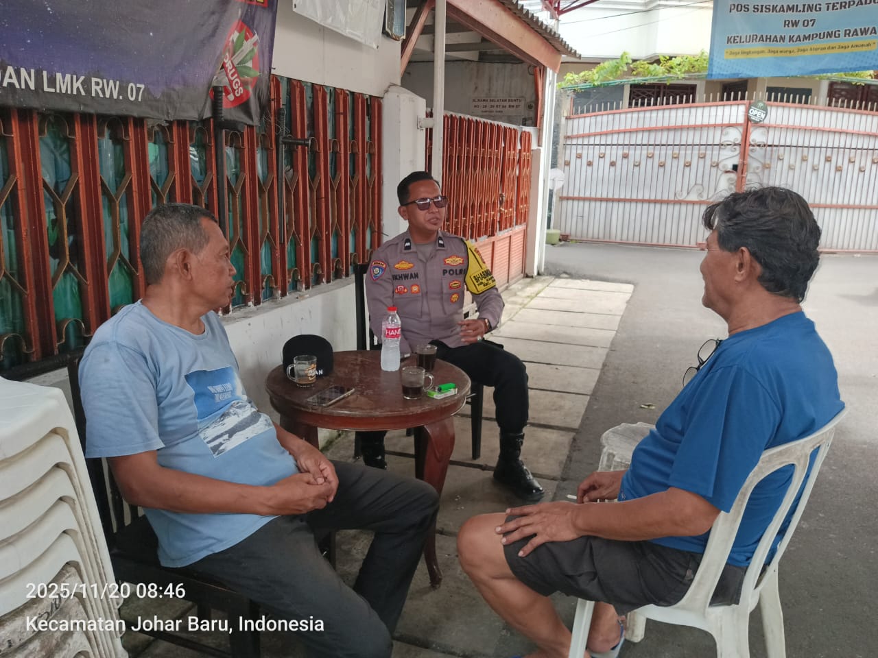Dalam kegiatan ini, Aipda Ikhwan melakukan dialogis bersama Pak Haris Katibum RW07 dan warga setempat, menyampaikan pesan kamtibmas, serta mengingatkan masyarakat untuk tetap waspada terhadap aksi curanmor.