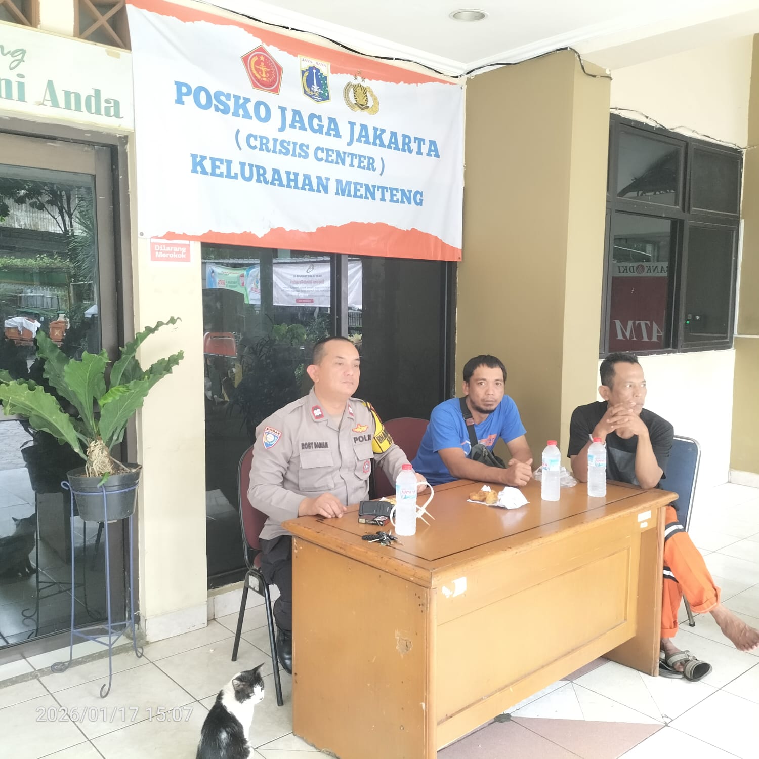 Jakarta Pusat — Dalam rangka menjaga stabilitas keamanan dan keselamatan warga di tengah musim penghujan, Bhabinkamtibmas Kelurahan Menteng, Aiptu Robby Danan Jaya, melaksanakan kegiatan monitoring di Posko Jaga Jakarta Crisis Center yang berlokasi di Jalan Anyer No. 9A, RT 01 RW 09, Kelurahan Menteng, Jakarta Pusat, Sabtu (17/1/2026).