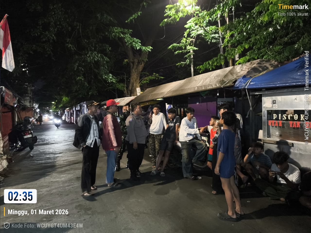 Jakarta Pusat — Dalam rangka menjaga situasi kamtibmas tetap kondusif selama bulan suci Ramadan, Bhabinkamtibmas Kelurahan Petamburan Aipda Ginanjar S.P bersama Tiga Pilar melaksanakan kegiatan patroli dan monitoring wilayah pada Minggu (1/3/2026) dini hari.