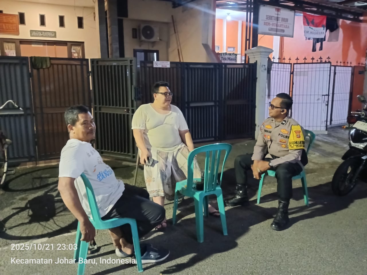 Jakarta Pusat – Dalam upaya menjaga keamanan dan ketertiban masyarakat, Bhabinkamtibmas Kelurahan Kampung Rawa, Aipda Ikhwan, melaksanakan kegiatan patroli wilayah dan door to door sambang ke kediaman Ketua RW 07, Pak Rizky Muamar Ramli, di Jl. Rawa Selatan Gang Buntu RT 06 RW 07, Kelurahan Kampung Rawa, Kecamatan Johar Baru, Selasa (21/10/2025) pukul 23.00 WIB.