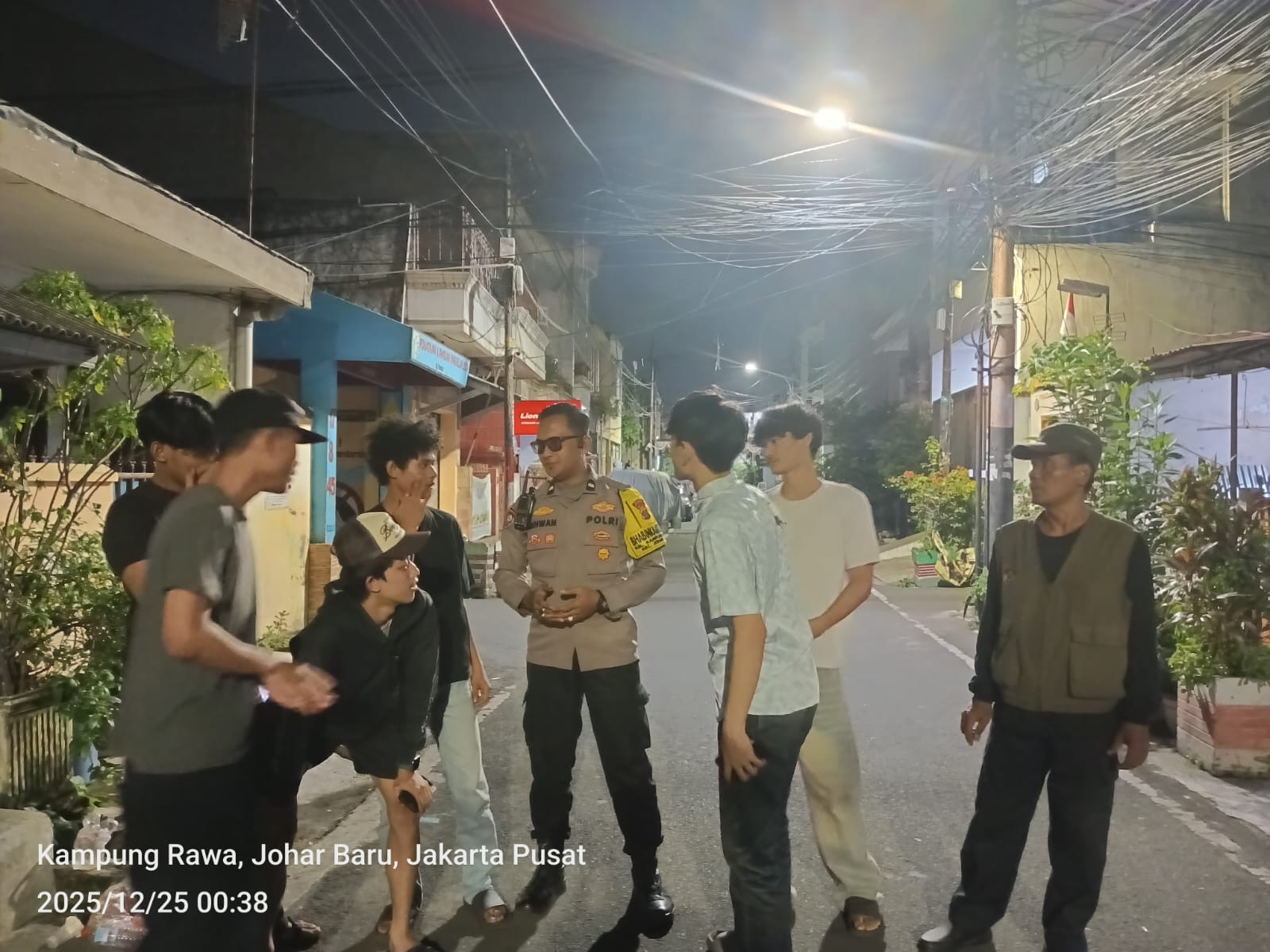 Jakarta Pusat — Dalam upaya mencegah potensi tawuran dan menjaga keamanan serta ketertiban masyarakat (kamtibmas), Bhabinkamtibmas Kelurahan Kampung Rawa Polsek Johar Baru melaksanakan kegiatan cooling system, patroli wilayah, dan pemantauan terhadap anak-anak remaja yang masih berkumpul hingga larut malam, Kamis, 25 Desember 2025, pukul 00.38 WIB.