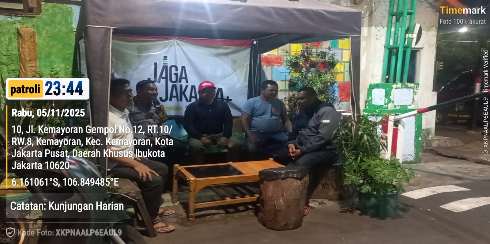 Patroli dilakukan di Jalan Kemayoran Timur II, RW 08, dan disambut oleh Ketua RW 08 Pujianto, Ketua RT 11/08 Wiji, serta petugas keamanan lingkungan Andri. Pada kesempatan tersebut, Aiptu Dwi memberikan apresiasi atas peran aktif warga dan pengurus lingkungan dalam menjaga Kamtibmas.