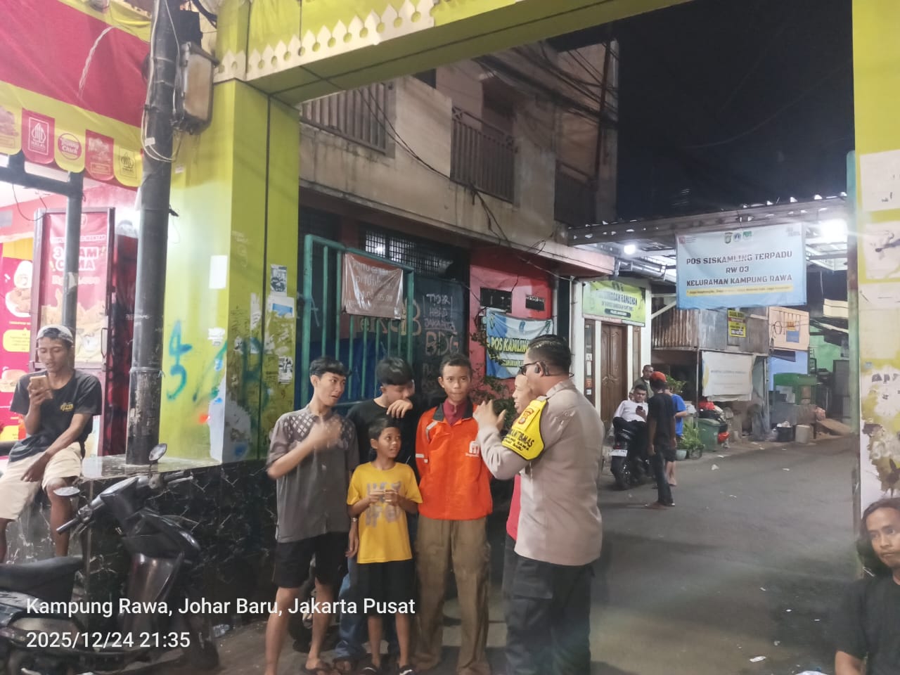 Kegiatan tersebut dilaksanakan pada Rabu malam, 24 Desember 2025, sekitar pukul 21.30 WIB, bertempat di Jalan T, Jalan Rawa Sawah Raya RT 07 RW 03. Patroli dilakukan oleh Aipda Ikhwan selaku Bhabinkamtibmas Kelurahan Kampung Rawa.