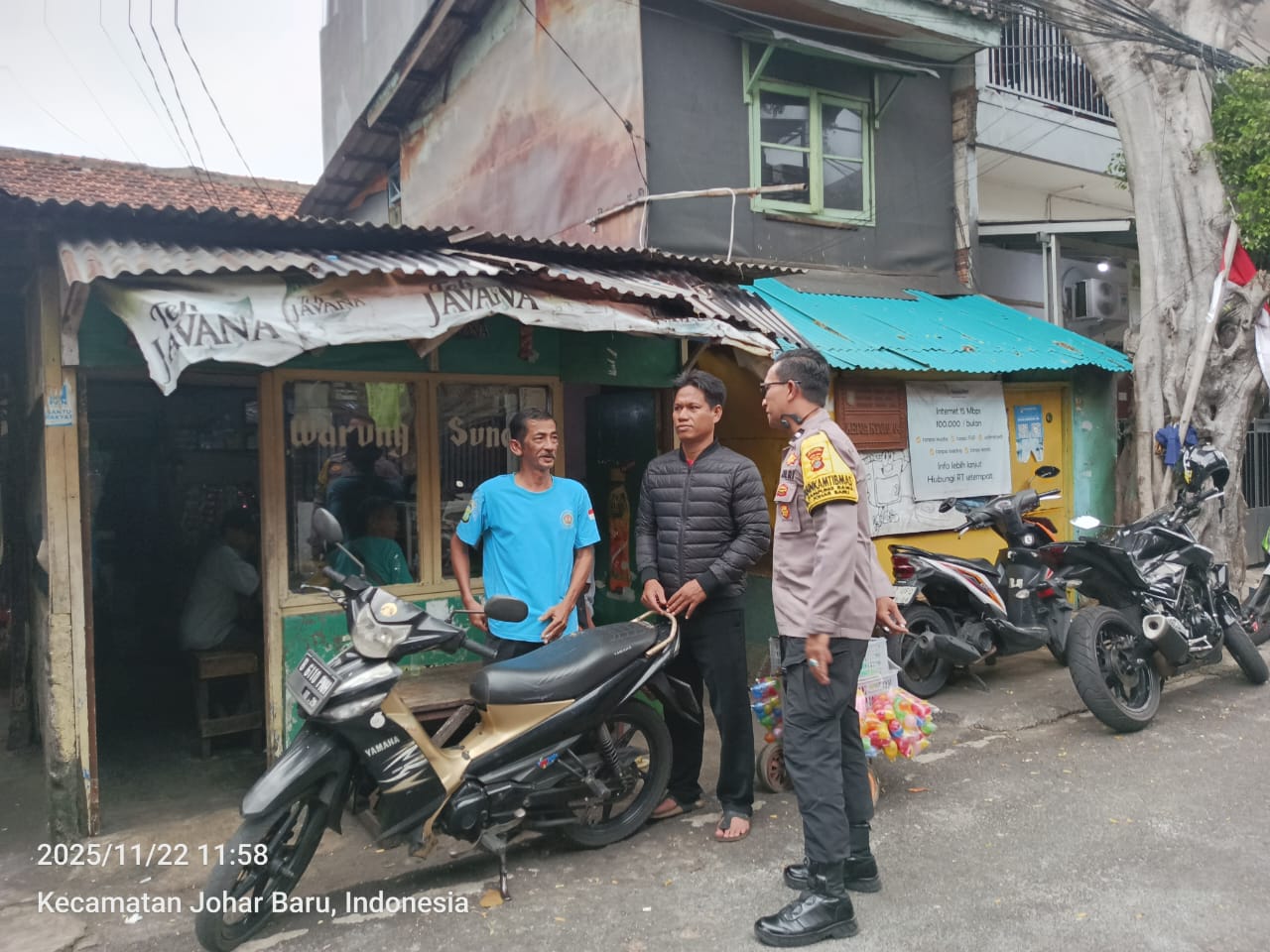 Jakarta Pusat – Upaya menjaga stabilitas keamanan wilayah terus dilakukan jajaran Polsek Johar Baru. Pada Sabtu, 22 November 2025 pukul 11.58 WIB, Bhabinkamtibmas Kelurahan Kampung Rawa Aipda Ikhwan melaksanakan kegiatan Cooling System, Patroli wilayah, serta Door to Door System (DDS) di lingkungan RT 17 RW 04, Jl Rawa Selatan 2, Kampung Rawa, Johar Baru.