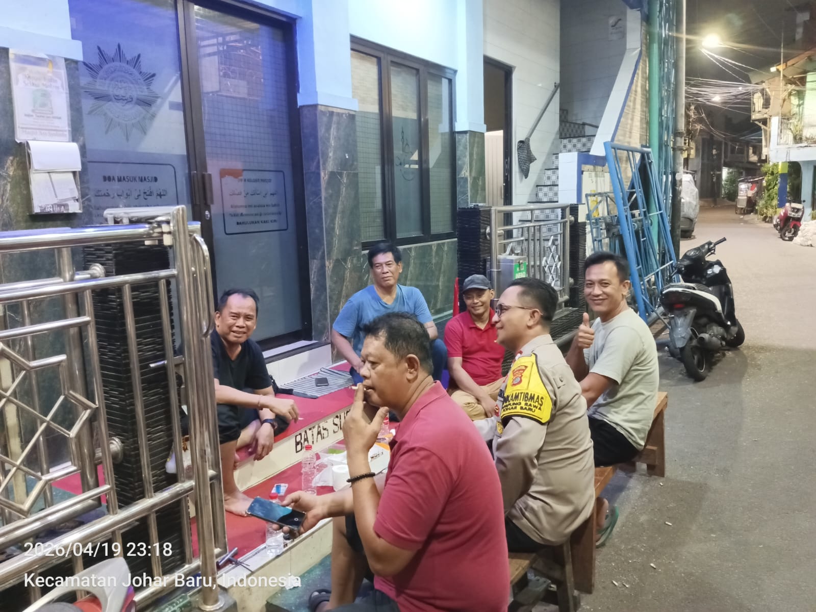 Jakarta Pusat – Dalam rangka menjaga stabilitas keamanan dan ketertiban masyarakat (kamtibmas), Bhabinkamtibmas Kelurahan Kampung Rawa melaksanakan kegiatan cooling system, patroli wilayah, serta door to door system (DDS) sambang lingkungan di RT 13 RW 01, Kelurahan Kampung Rawa, Kecamatan Johar Baru, Jakarta Pusat, pada Minggu malam (19/4/2026) pukul 23.18 WIB.