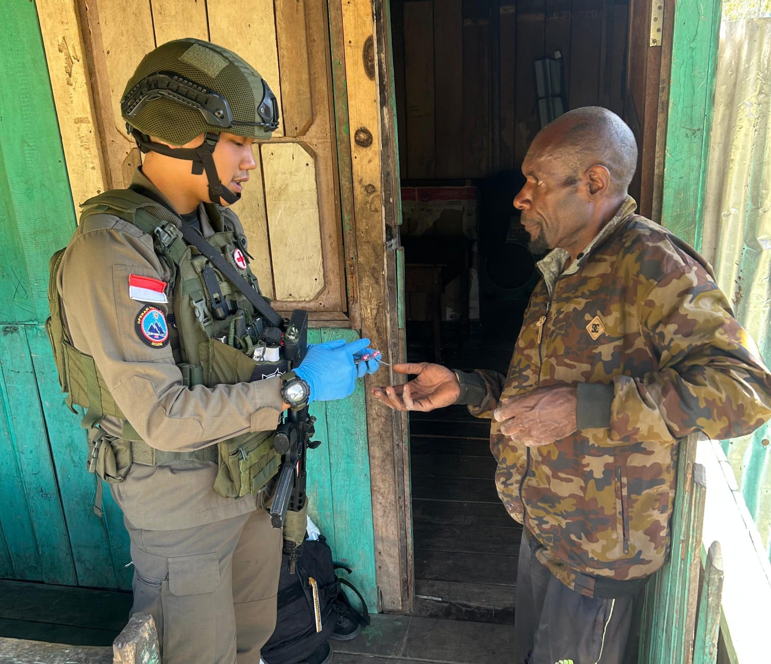 Dengan penuh kepedulian, personel Brimob memberikan perawatan luka kepada salah satu warga berinisial A.M. (33). Tindakan tersebut dilakukan sebagai bentuk tanggung jawab sosial sekaligus wujud empati terhadap kondisi masyarakat di daerah penugasan yang memiliki keterbatasan akses layanan kesehatan.