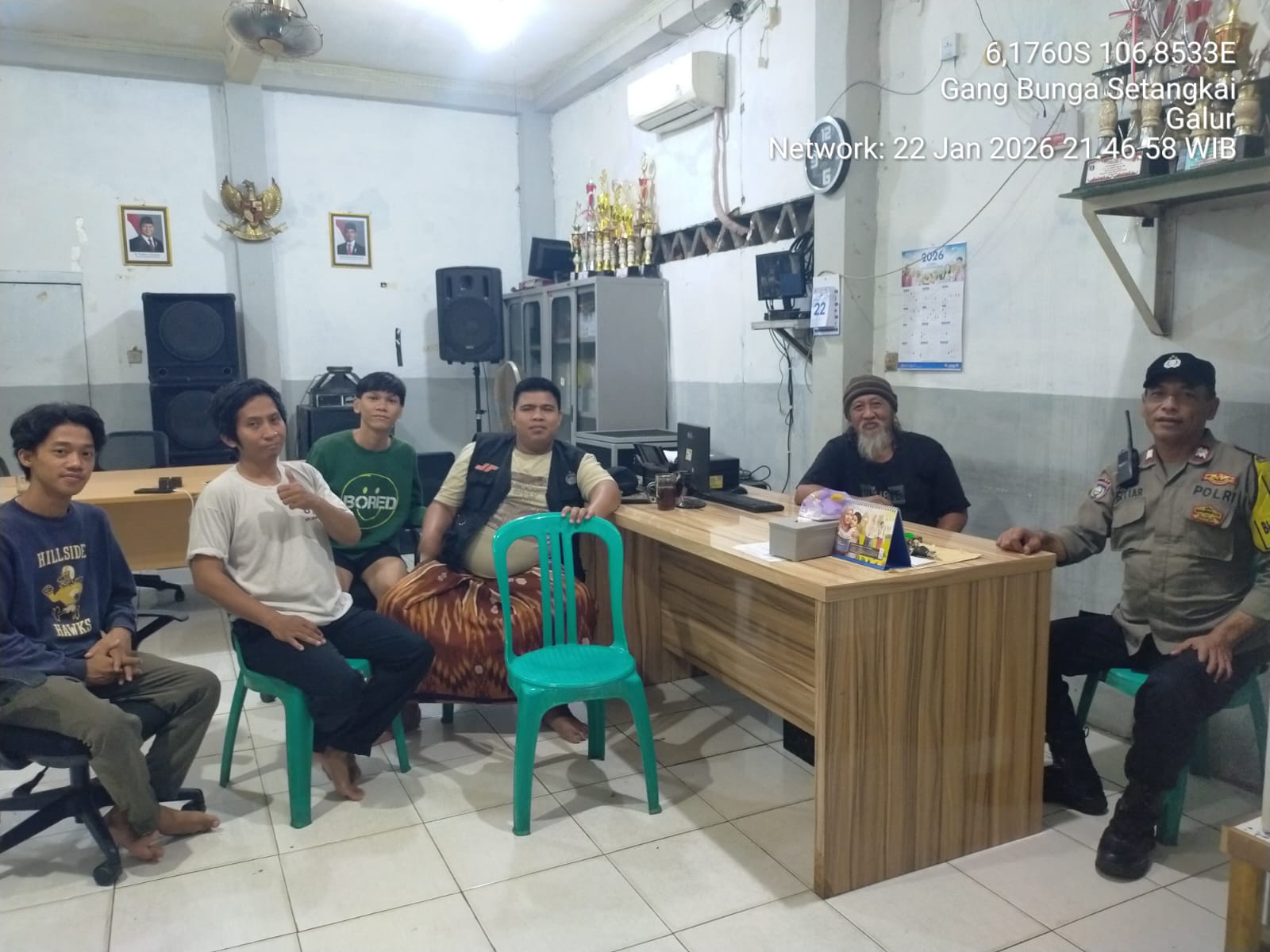 Jakarta Pusat — Upaya memperkuat keamanan dan ketertiban masyarakat (kamtibmas) terus dilakukan melalui pendekatan dialogis di tingkat lingkungan. Bhabinkamtibmas Kelurahan Galur melaksanakan kegiatan sambang Pos Keamanan Lingkungan (Pos Kamling) RW 03, Kelurahan Galur, Kecamatan Johar Baru, Jakarta Pusat, pada Kamis (22/1/2026) malam.