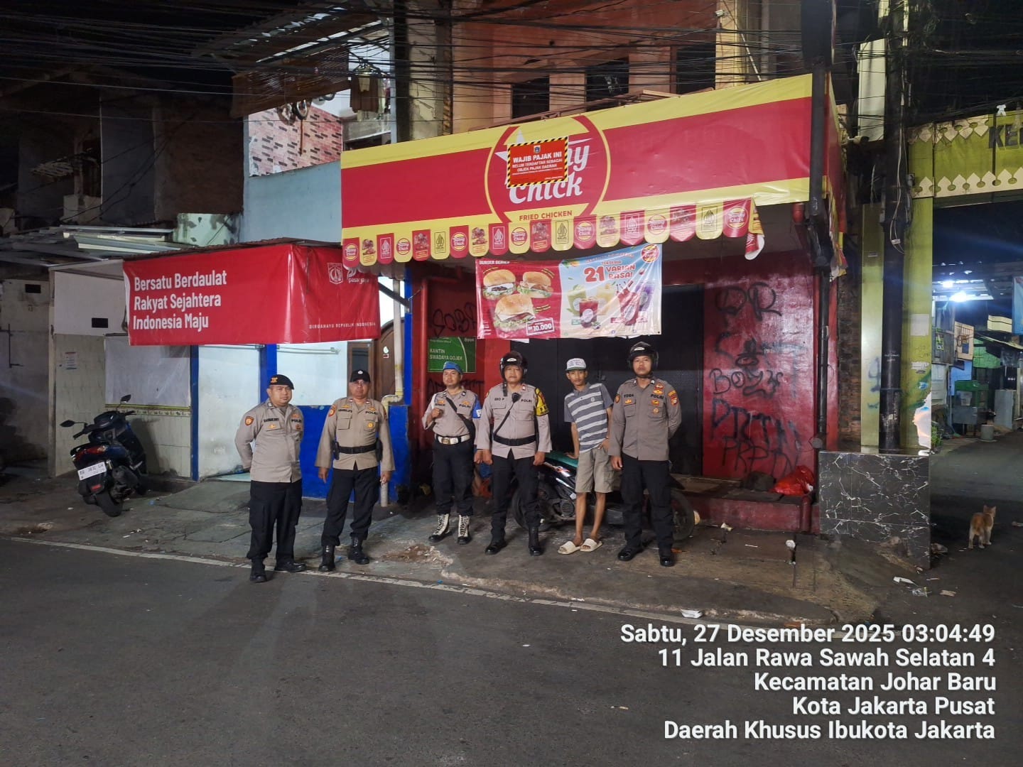 Jakarta Pusat – Untuk memastikan situasi keamanan dan ketertiban masyarakat (kamtibmas) tetap aman dan kondusif, jajaran Polsek Johar Baru menggelar patroli cipta kondisi pada Sabtu (27/12/2025) dini hari, mulai pukul 02.40 WIB, di wilayah hukum Polsek Johar Baru, Jakarta Pusat.
