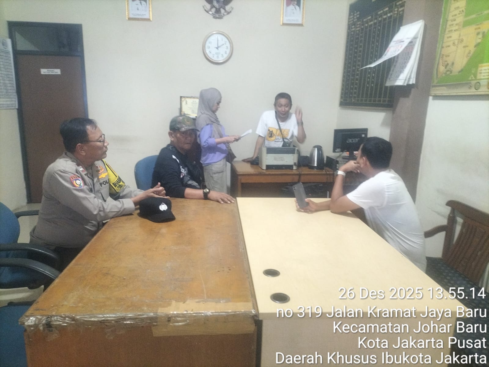 Kegiatan tersebut dilaksanakan pada Jumat, 26 Desember 2025, pukul 14.00 WIB, bertempat di Sekretariat RW 01, Jl. Kramat Jaya RW 01 Kelurahan Johar Baru, Jakarta Pusat. Patroli dialogis dilakukan oleh Aiptu Sunarto, selaku Bhabinkamtibmas Kelurahan Johar Baru.