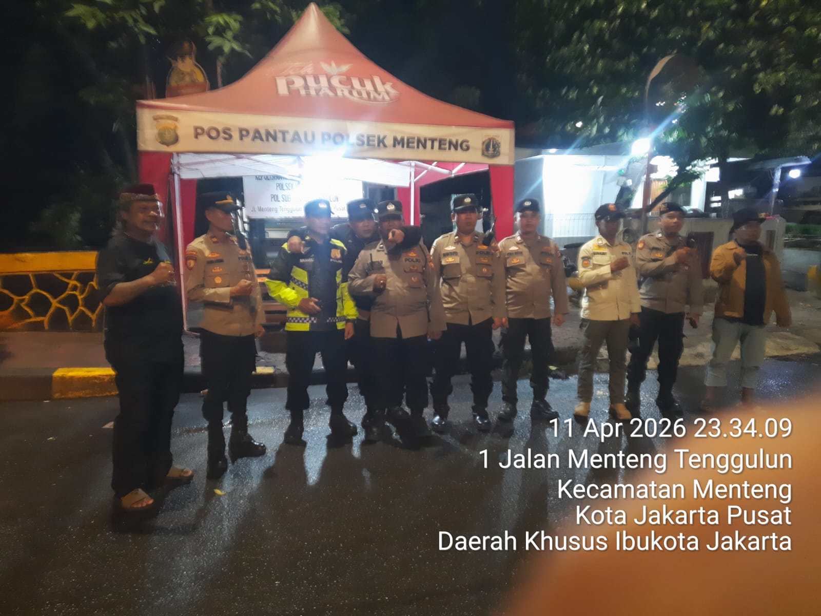 Jakarta Pusat – Upaya menjaga keamanan dan ketertiban masyarakat (kamtibmas) terus digencarkan jajaran Polsek Metro Menteng melalui patroli cipta kondisi (cipkon) di sejumlah titik rawan. Dalam rangka program Jaga Jakarta, kegiatan pengamanan kali ini difokuskan di perbatasan Menteng–Tenggulun, Jakarta Pusat, guna mengantisipasi potensi gangguan keamanan pada malam hari. Minggu (12/4/2026)