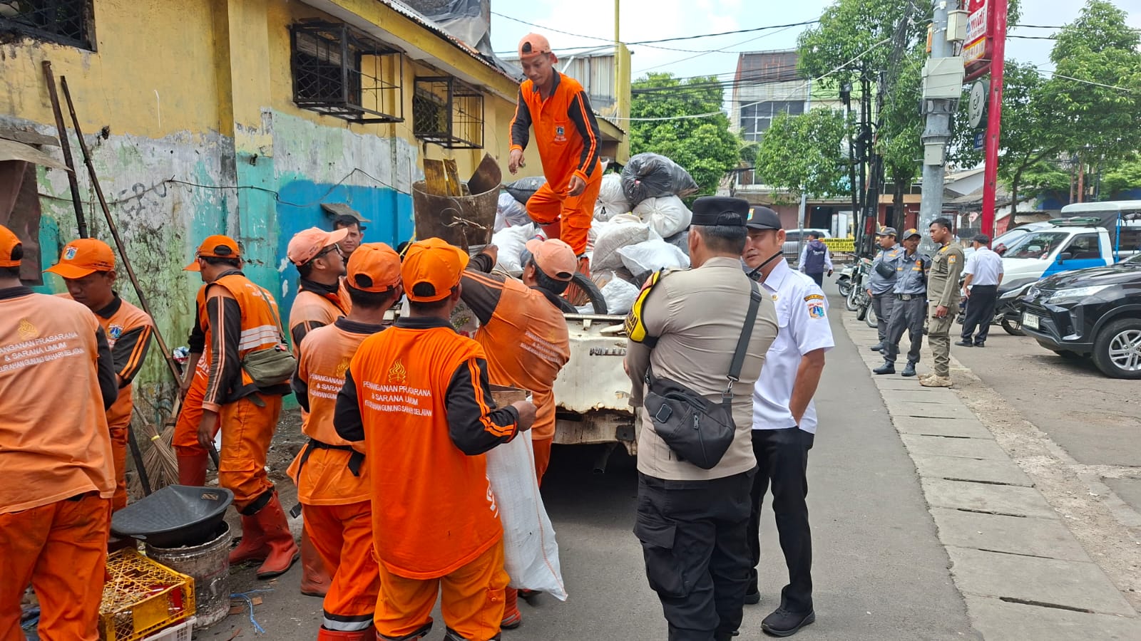 Kegiatan yang dimulai sejak pukul 08.30 WIB tersebut dipimpin oleh Sekretaris Kelurahan Gunung Sahari Selatan, Tarida, dan melibatkan gabungan personel dari TNI-Polri, Dinas Perhubungan, Satpol PP, FKDM, LMK, serta PPSU.