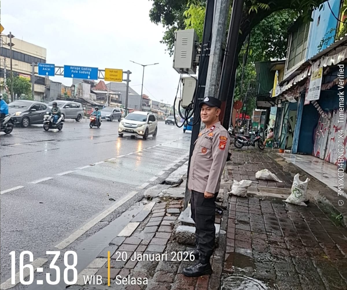 Sementara itu, Kapolsek Johar Baru Kompol Saiful Anwar menyampaikan bahwa pengaturan lalu lintas difokuskan pada jam-jam sibuk guna mencegah kemacetan dan potensi kecelakaan. “Kami pastikan anggota tetap siaga meski hujan, agar arus lalu lintas tetap lancar dan masyarakat merasa aman saat beraktivitas,” kata Saiful.