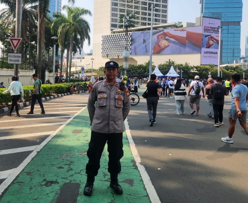 Jakarta Pusat – Dalam rangka menjaga keamanan dan kenyamanan masyarakat yang beraktivitas di kawasan Car Free Day (CFD) Bundaran Hotel Indonesia, Menteng, Jakarta Pusat, personel Humas Polsek Metro Menteng, Aipda Himawan, melaksanakan kegiatan pemantauan dan pengawasan secara langsung pada Minggu pagi (12/10/2025). Kegiatan ini merupakan bagian dari upaya kepolisian untuk mengantisipasi potensi tindak kejahatan jalanan seperti pencopetan, penjambretan, maupun kehilangan barang berharga di tengah keramaian pengunjung CFD.