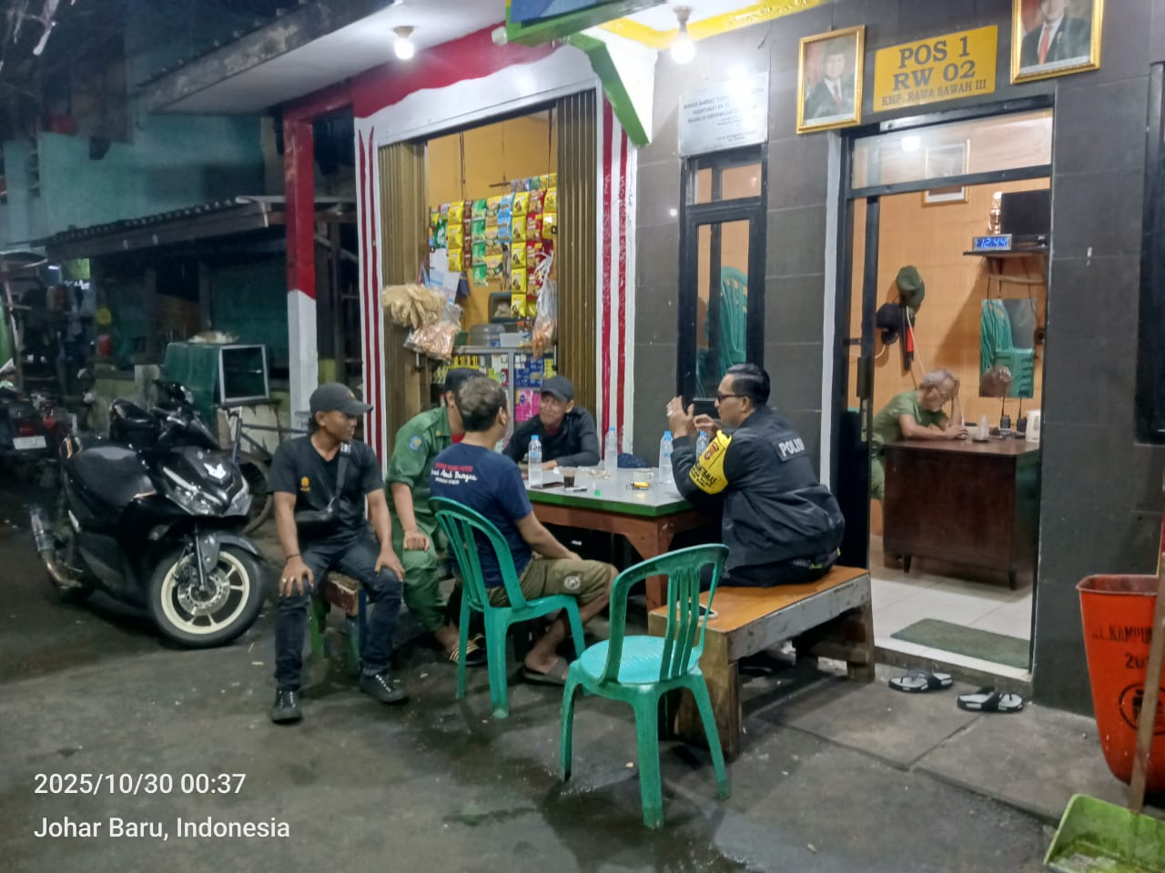 Jakarta Pusat – Bhabinkamtibmas Kelurahan Kampung Rawa Aipda Ikhwan melaksanakan patroli wilayah dan kunjungan ke Pos Siskamling RT11 RW02, Jl. Rawa Sawah 3, Kelurahan Kampung Rawa, Kecamatan Johar Baru, Kamis (30/10/2025) pukul 00.30 WIB.