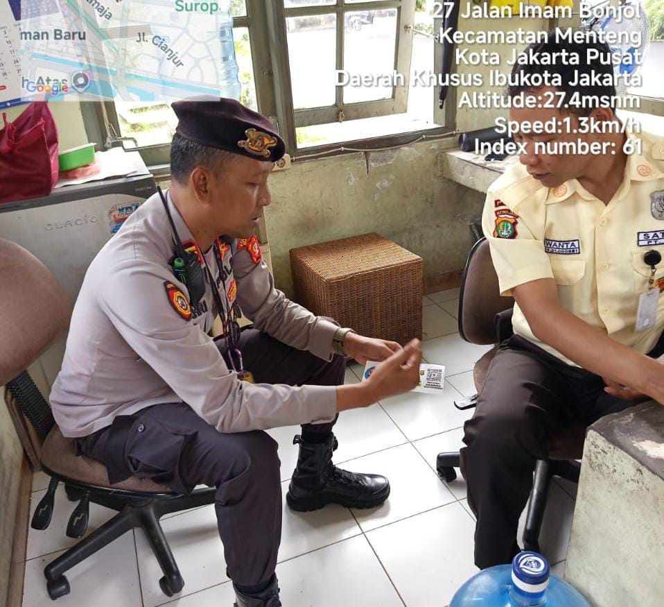 Jakarta Pusat – Dalam rangka meningkatkan kualitas pelayanan kepolisian yang cepat, responsif, dan berbasis teknologi, Kanit Samapta Polsek Metro Menteng AKP Samsul Bahri melaksanakan kegiatan sosialisasi Barcode Sahabat Patroli Polisi dengan menempelkan stiker barcode di Jalan Imam Bonjol No. 27, Menteng, Jakarta Pusat. Senin (22/12/2025)