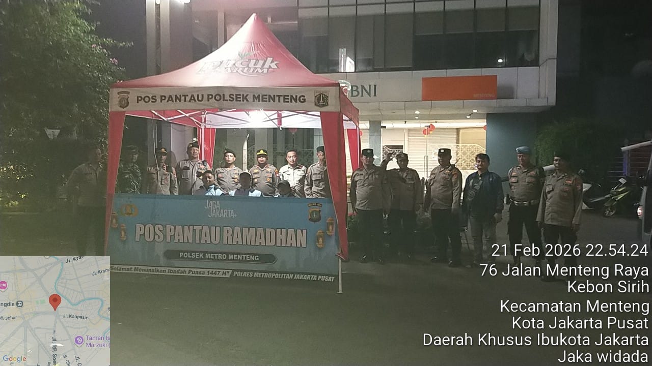 Jakarta Pusat – Memasuki bulan suci Ramadhan, Polsek Metro Menteng meningkatkan pemantauan keamanan guna mengantisipasi gangguan kamtibmas, potensi tawuran warga, serta berbagai kerawanan pada malam hari. Kegiatan ini dilaksanakan di Pos Pantau Ramadhan kawasan Kantor Pos Cikini, Jalan Menteng Raya, Menteng, Jakarta Pusat, sebagai salah satu titik strategis dengan mobilitas masyarakat yang tinggi. Minggu (22/2/2026)