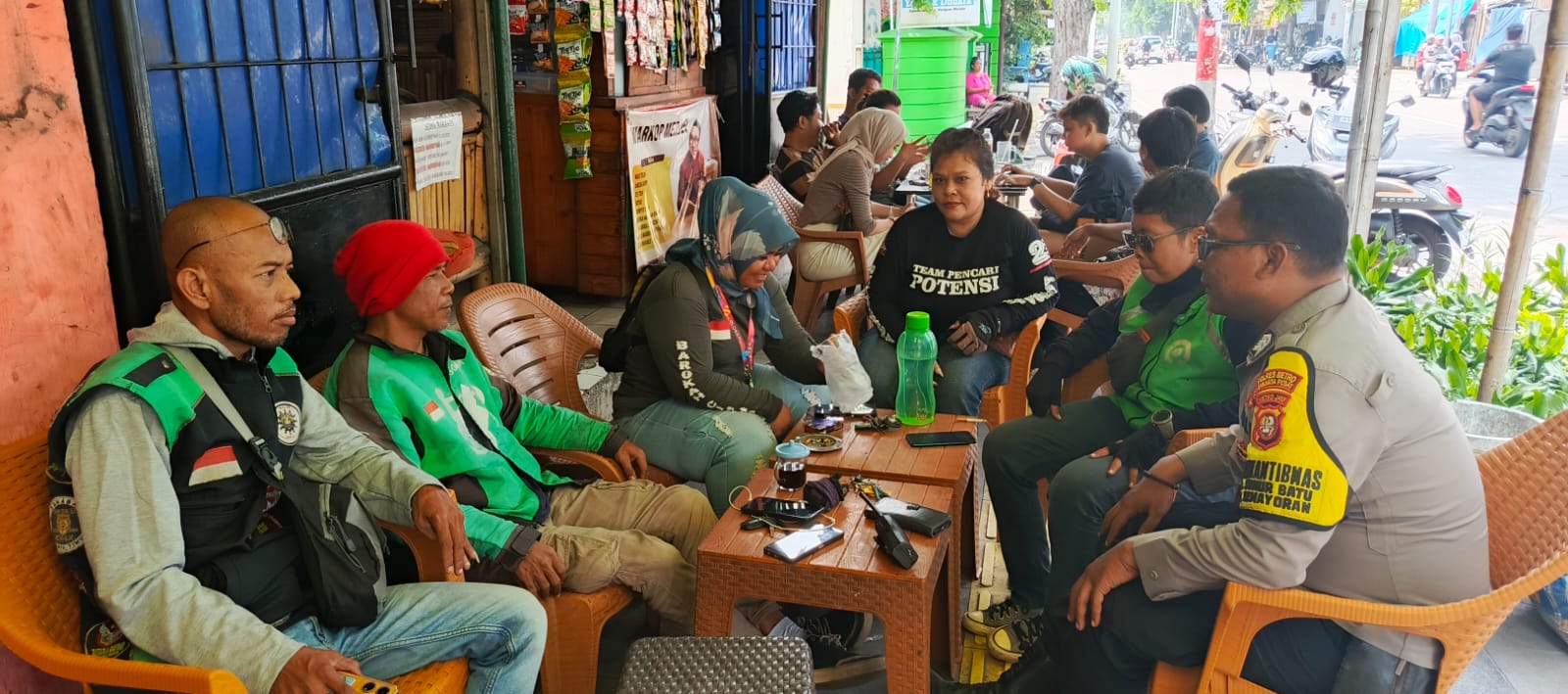Jalin Keakraban, Bhabinkamtibmas Kemayoran Silaturahmi dengan Komunitas Ojol