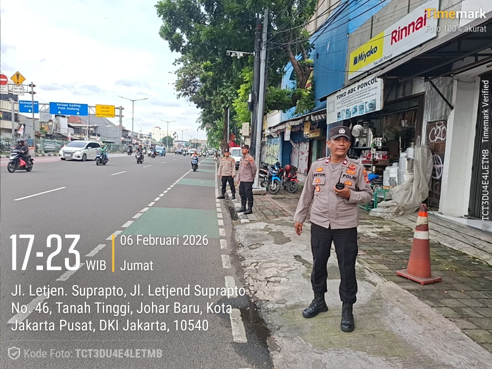 Jakarta Pusat – Guna memastikan kelancaran arus lalu lintas serta memberikan rasa aman bagi pengguna jalan pada jam sibuk sore hari, jajaran Polsek Johar Baru melaksanakan kegiatan pengaturan lalu lintas di sejumlah titik rawan kemacetan dan kepadatan, Jumat, 6 Februari 2026, pukul 17.00 WIB hingga 19.00 WIB.