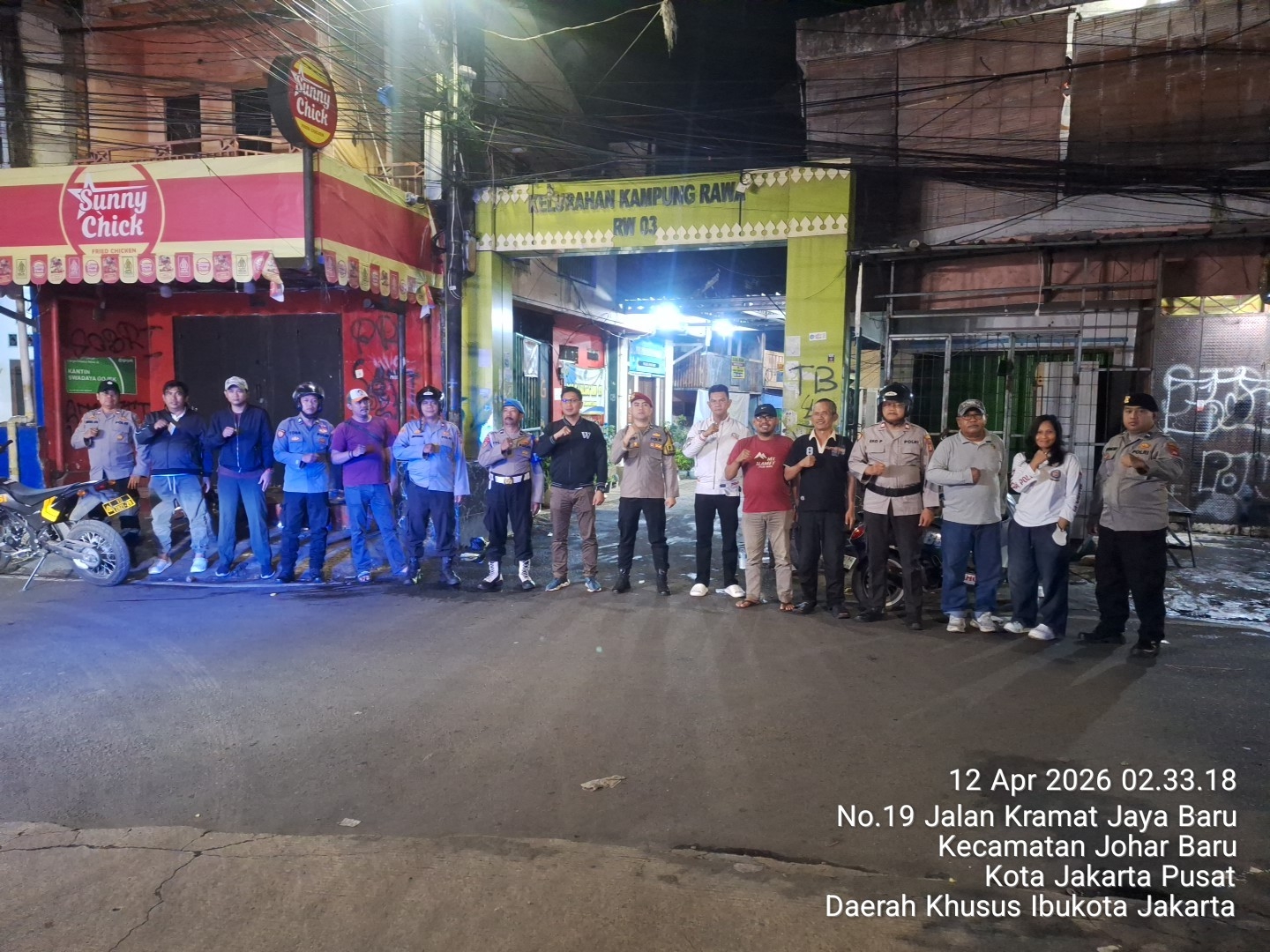 Jakarta Pusat – Upaya menjaga stabilitas keamanan wilayah terus dilakukan jajaran Polsek Johar Baru melalui patroli cipta kondisi pada Minggu (12/4/2026) dini hari. Kegiatan yang dimulai pukul 02.23 WIB ini menyasar sejumlah titik rawan di wilayah hukum Polsek Johar Baru.