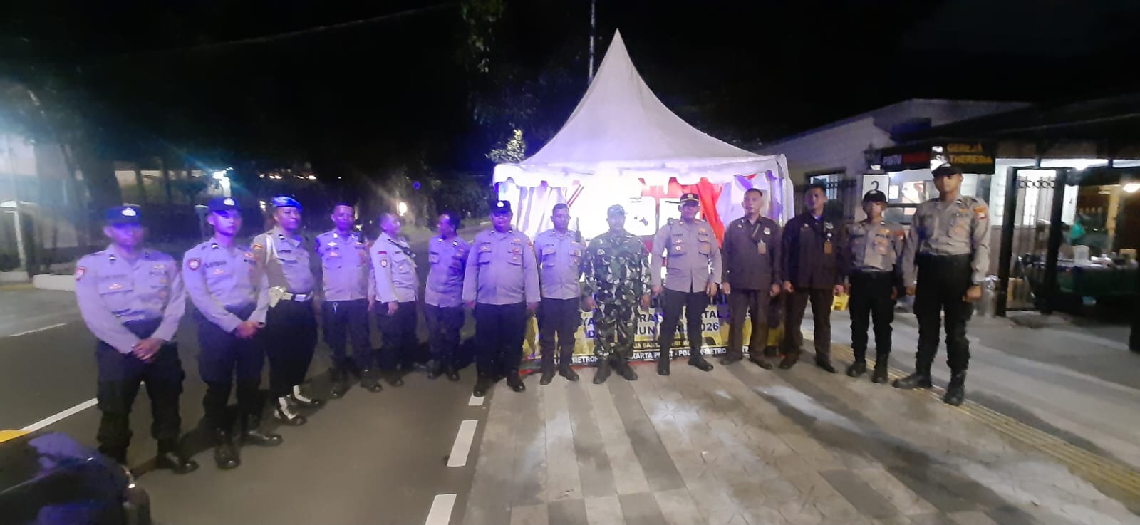 Jakarta Pusat – Menjelang perayaan malam pergantian tahun, jajaran Polsek Metro Menteng bersama unsur Tiga Pilar melaksanakan patroli pengamanan dalam rangka program Jaga Jakarta guna memastikan situasi kamtibmas tetap aman dan kondusif. Kegiatan patroli tersebut dipusatkan di Pos Pengamanan (Pospam) Nataru Gereja St. Theresia, Jalan Gereja Theresia, Gondangdia, Menteng, Jakarta Pusat. Minggu (28/12/2025)