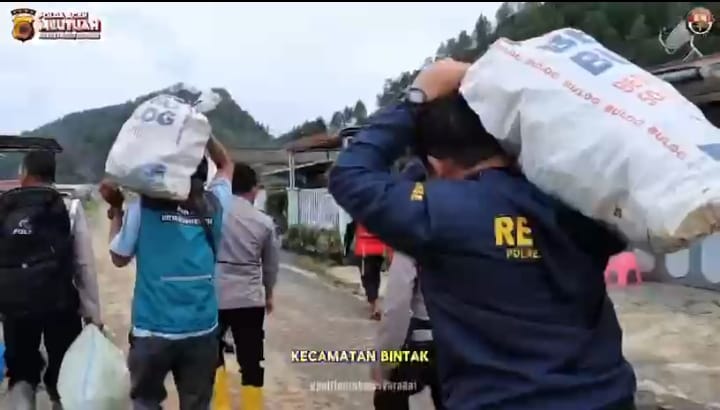 Takengon – Kapolres Aceh Tengah AKBP Muhamad Taufiq, S.I.K., M.H., menyalurkan langsung bantuan sembako kepada warga terdampak bencana banjir, banjir bandang, dan tanah longsor di Kecamatan Bintang, Kabupaten Aceh Tengah, Selasa (2/12/2025).
