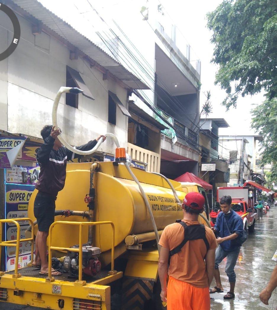 Selain itu, proses penanganan genangan air juga melibatkan petugas dari Dinas Pertamanan dan Suku Dinas Pemadam Kebakaran yang membantu melakukan penyedotan air di sejumlah titik yang terdampak.