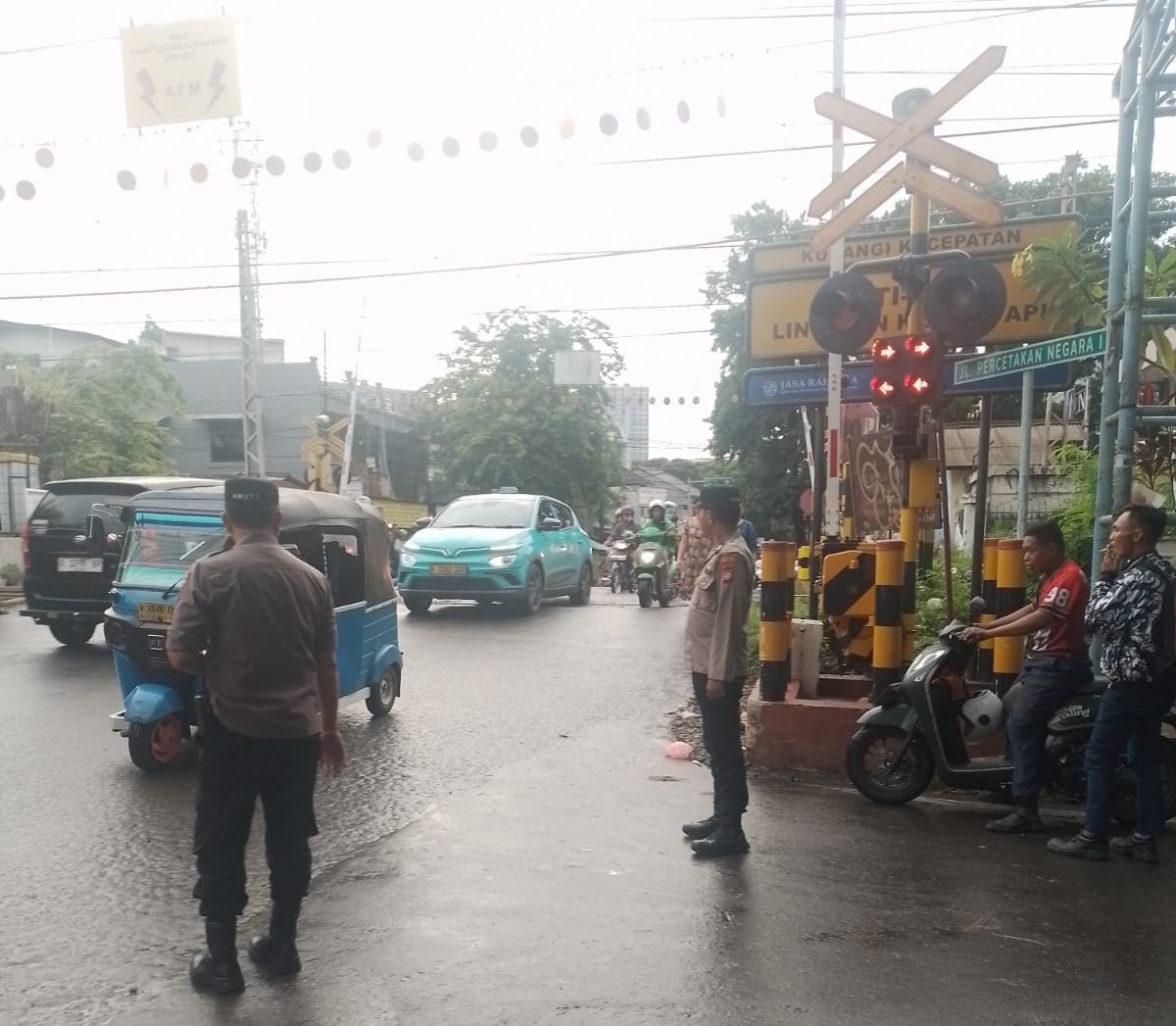 Kapolsubsektor Kayu Awet Lakukan Pengaturan Lalu Lintas Sore Hari di Lintasan KA Percetakan Negara, Antisipasi Kemacetan dan Kejahatan 3C